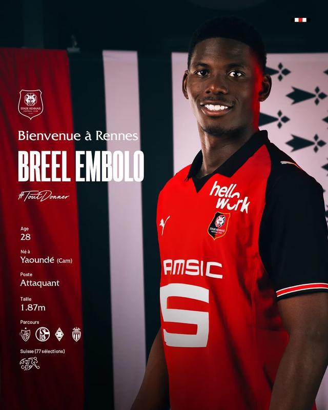 恩博洛 摩纳哥 → 雷恩(1300万欧元)